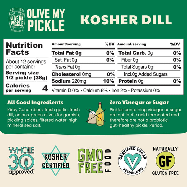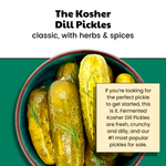 If you're looking for the perfect pickle to get started, this is it. Fermented Kosher Dill pickles are fresh, crunchy and dilly and our #1 most popular pickles for sale.