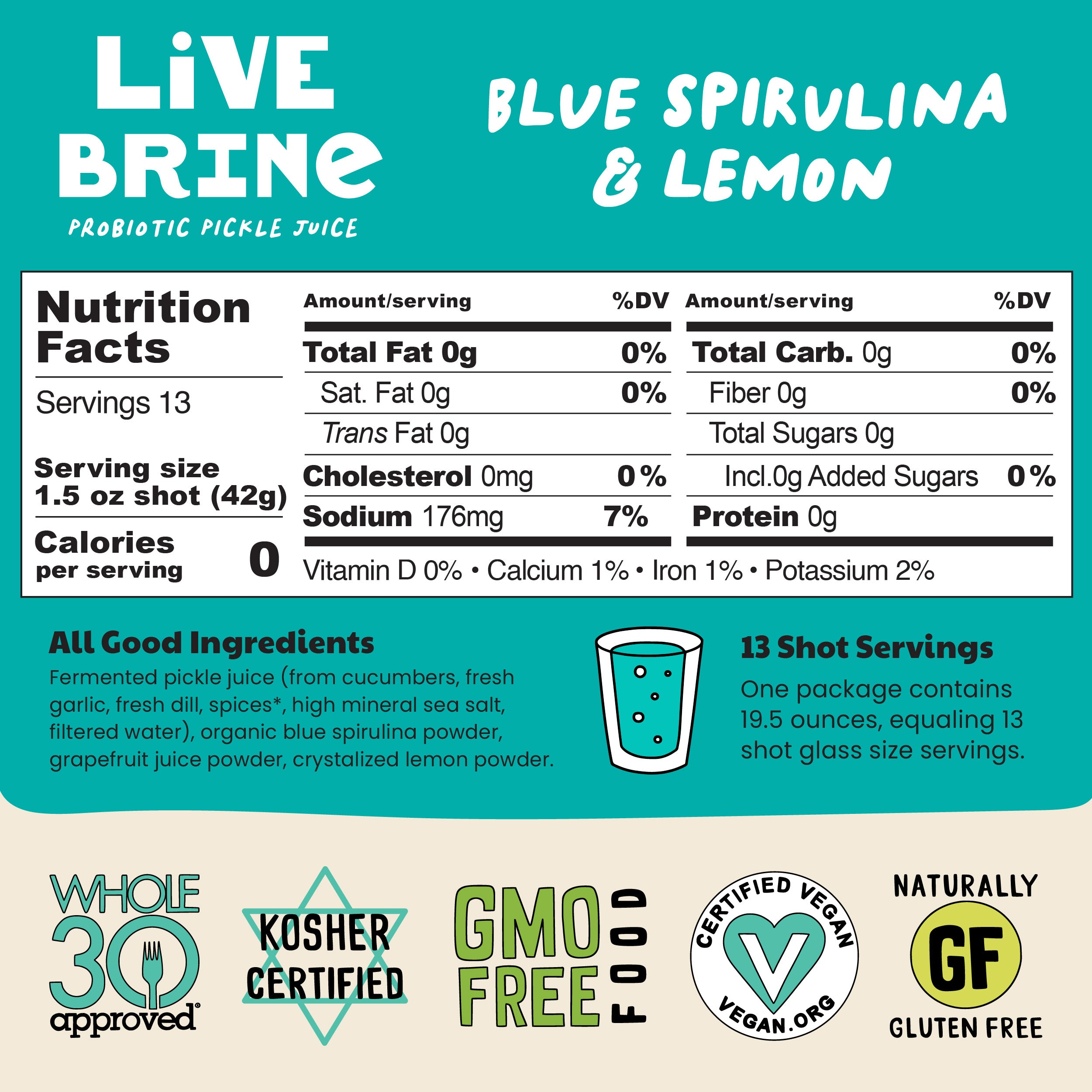 - LiveBrine is pickle juice made from naturally fermented, salt water brine pickles. Loaded with 13 billion CFUs of lactobacillus per serving.