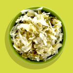 Real, salt-water brine fermented sauerkraut contains naturally occurring probiotics that are optimal for gut health. Green cabbage is incredibly nutrient dense, rich in fiber and antioxidants.