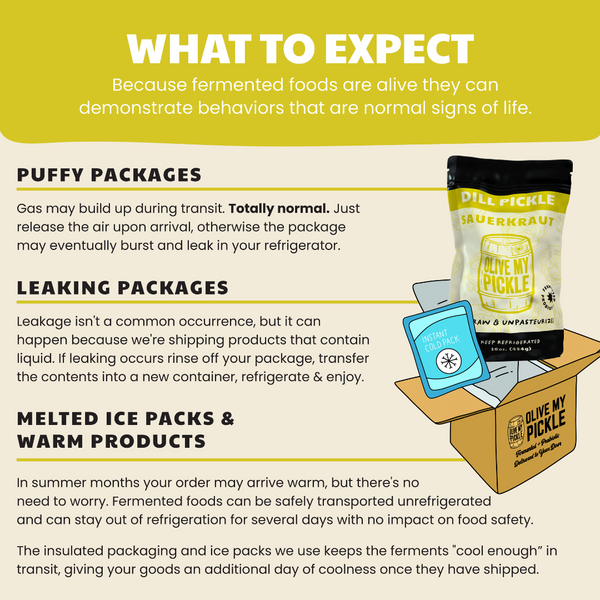 • One package contains 16 ounces, equaling one full pint of kraut plus brine.