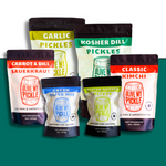 - Fermented Food Bundle Includes: (1) Kosher Dill Pickles, (1) The Garlic Pickles, (1) Carrot + Dill Sauerkraut, (1) Classic Kimchi, (1) Greek Olives, (1) Pitted Butter Olives