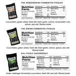 9 mouthwatering pickle themed ferments in one fantastic bundle! Get ready for a pickle-packed adventure like no other! This bundle of naturally fermented pickle foods combines all 9 of our tantalizing pickle flavors, so you can savor the full spectrum of pickle perfection.