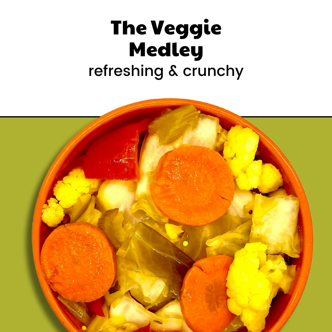 - Giardiniera mix features green cabbage, carrots, cauliflower and red peppers naturally fermented in salt water brine.