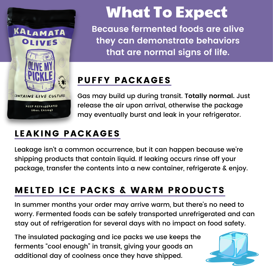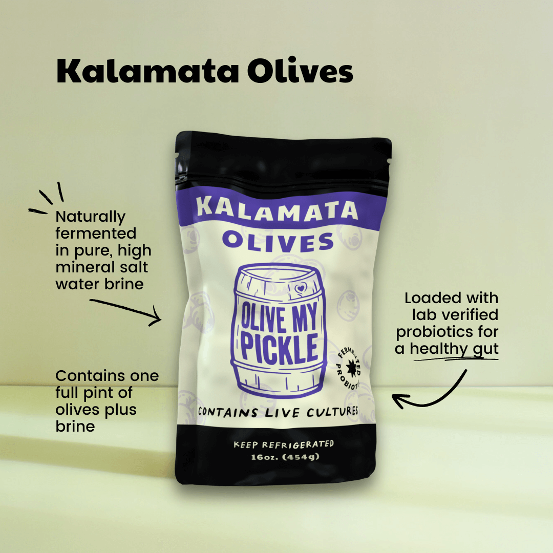- Discover the benefits of pitted Kalamata Olives for sale from Olive My Pickle! One package contains 16 ounces, equaling one full pint of olives plus brine.