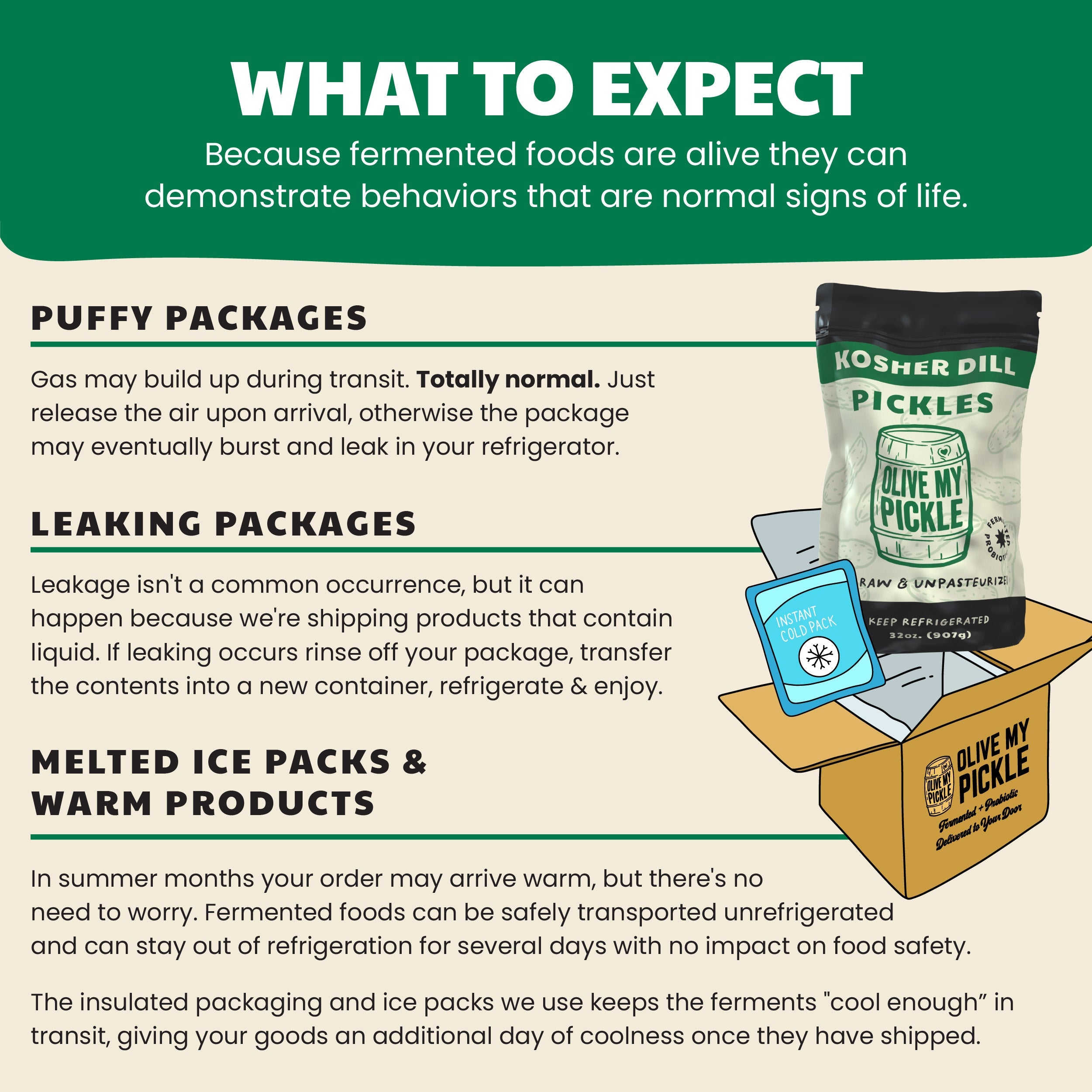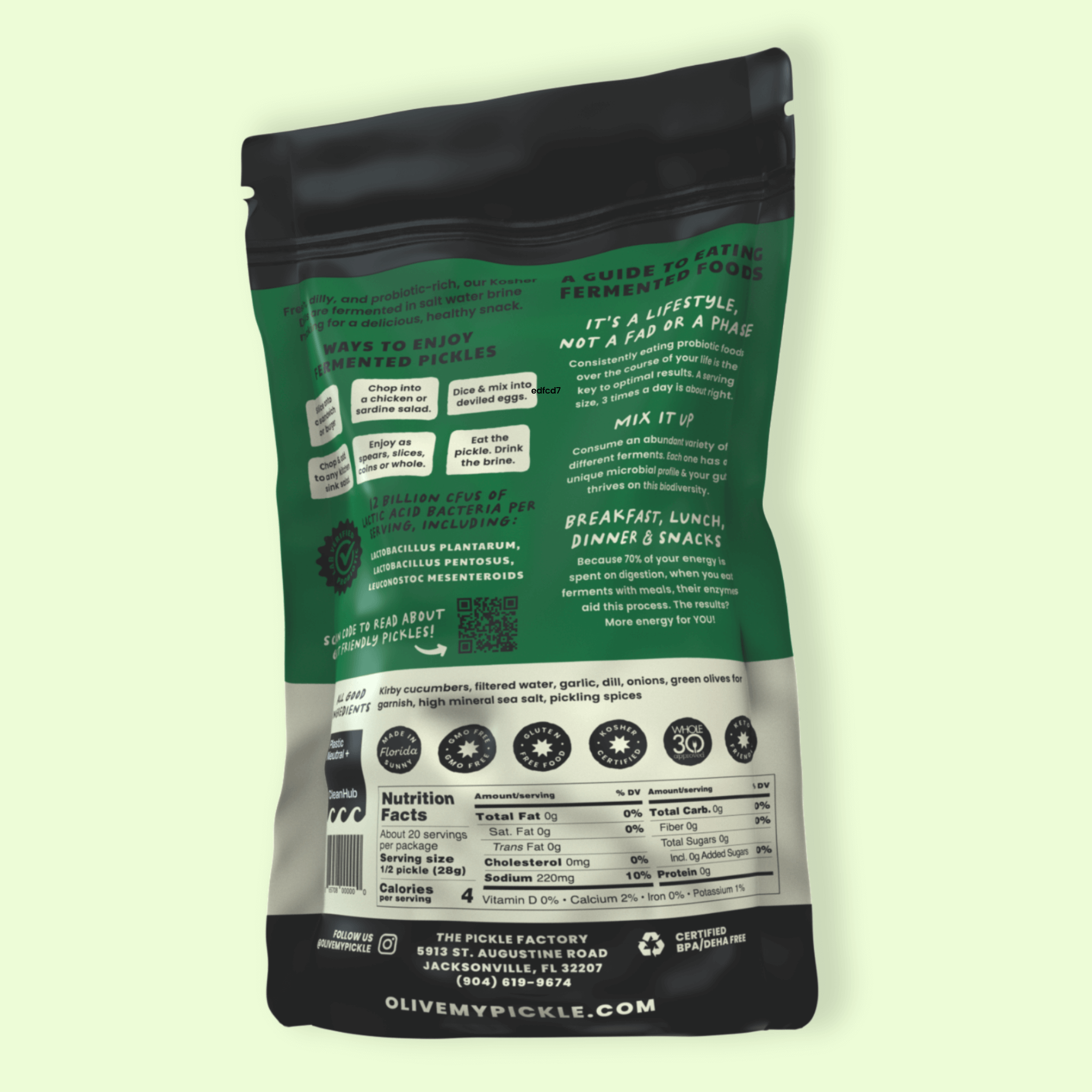 - Each 32 oz package contains over 1 pound of pickles plus probiotic brine.