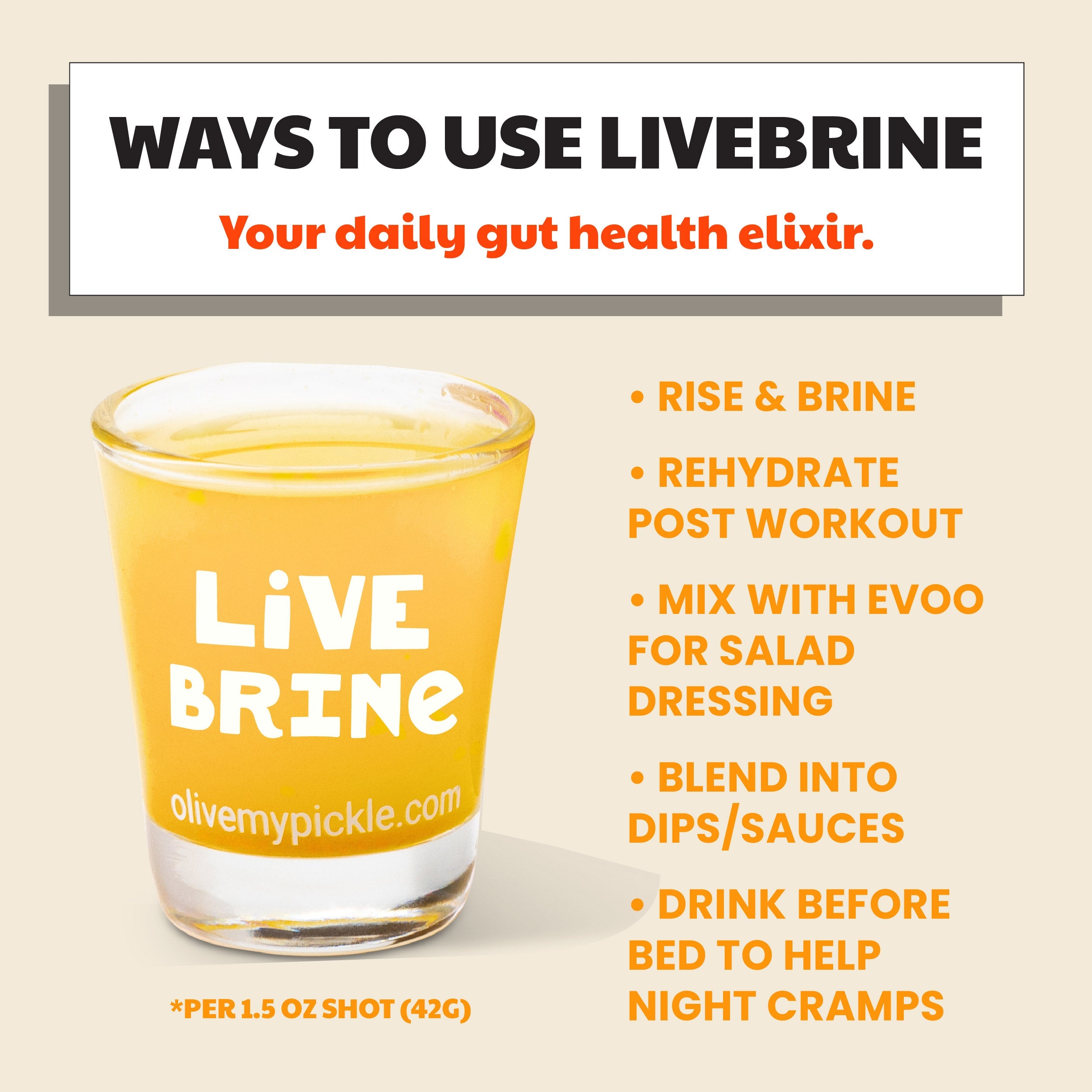 - LiveBrine is probiotic pickle juice made from naturally fermented, salt water brine pickles. This spicy pickle juice is loaded with 13 billion CFUs of lactobacillus per serving.