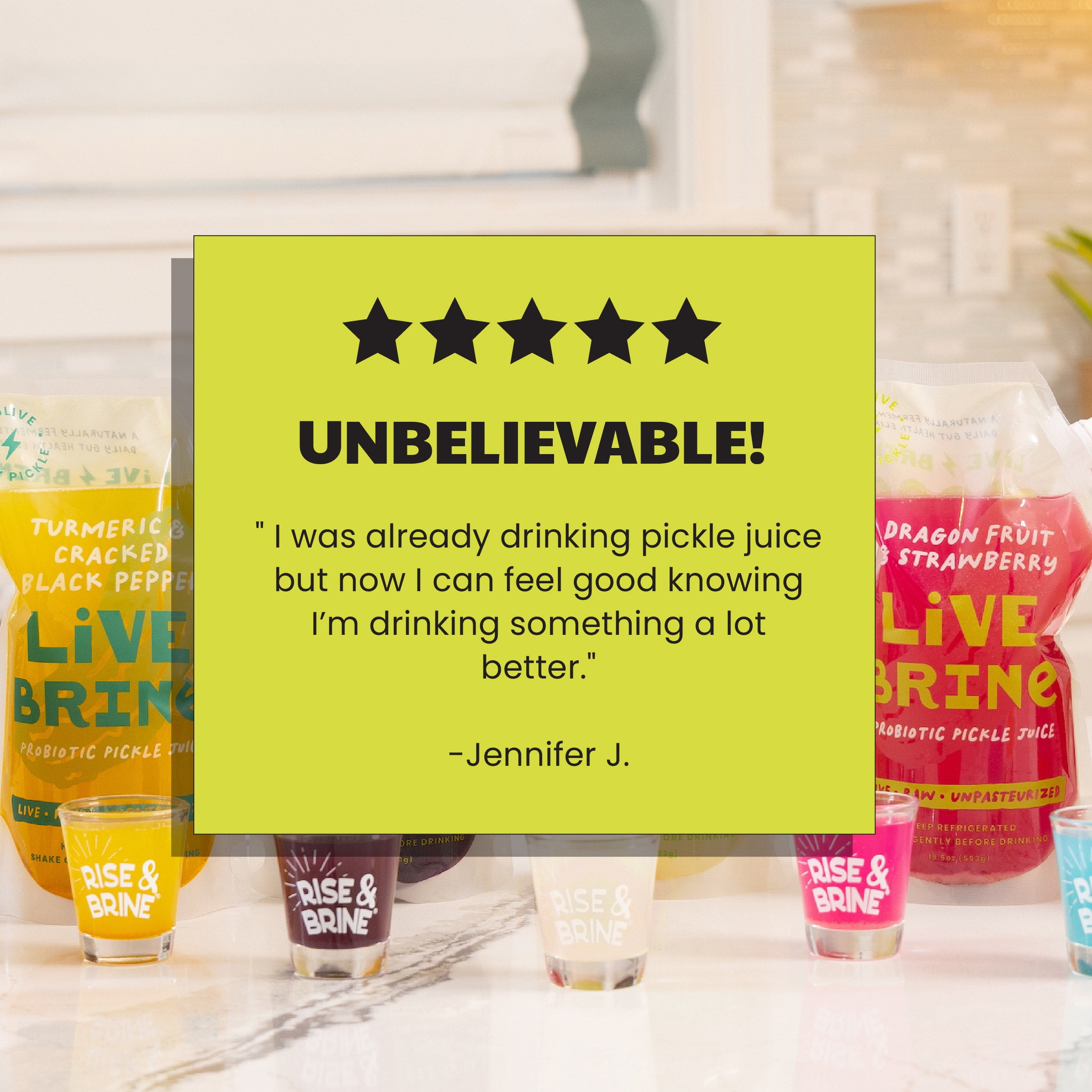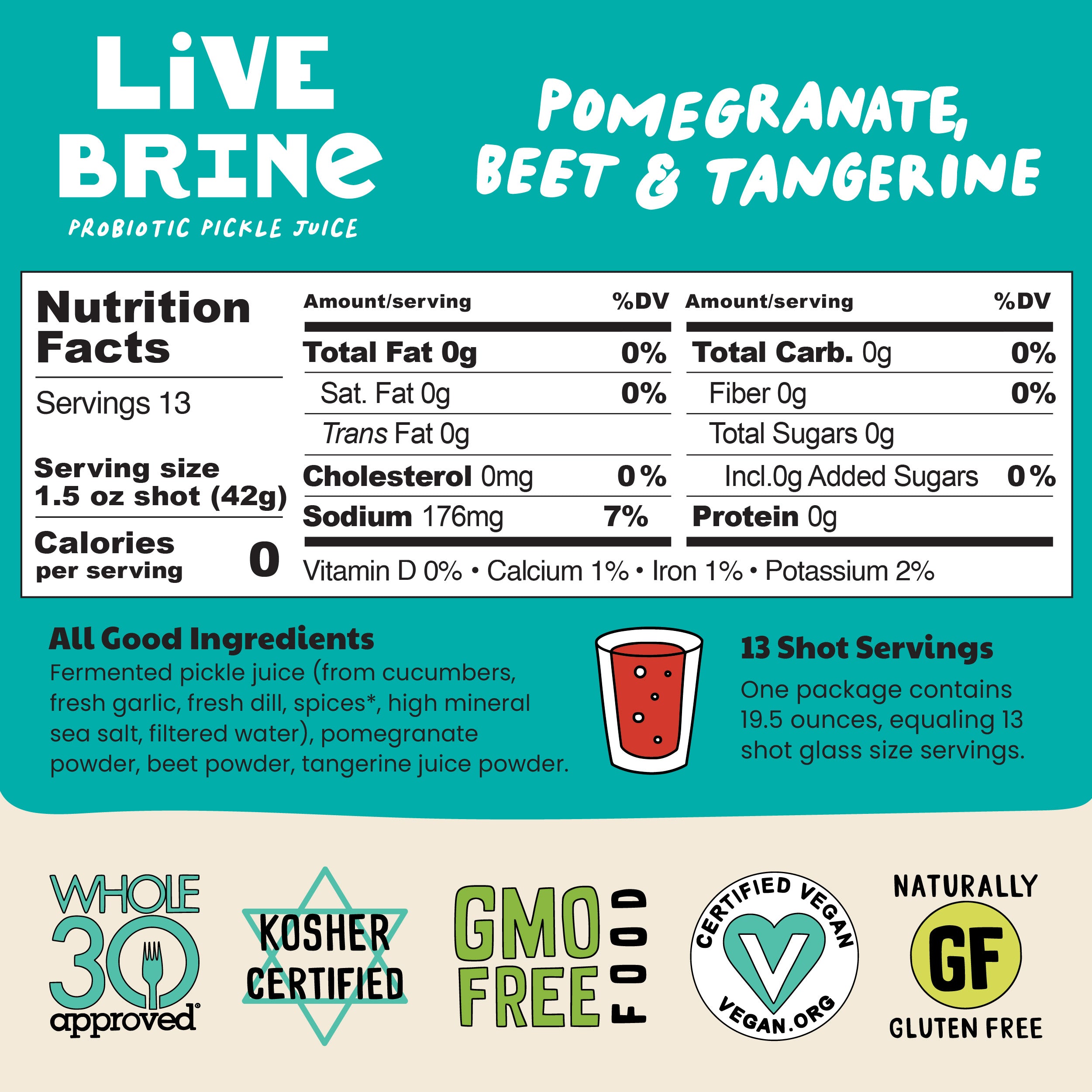 - LiveBrine is probiotic pickle juice made from naturally fermented, salt water brine pickles. Loaded with 13 billion CFUs of lactobacillus per serving.