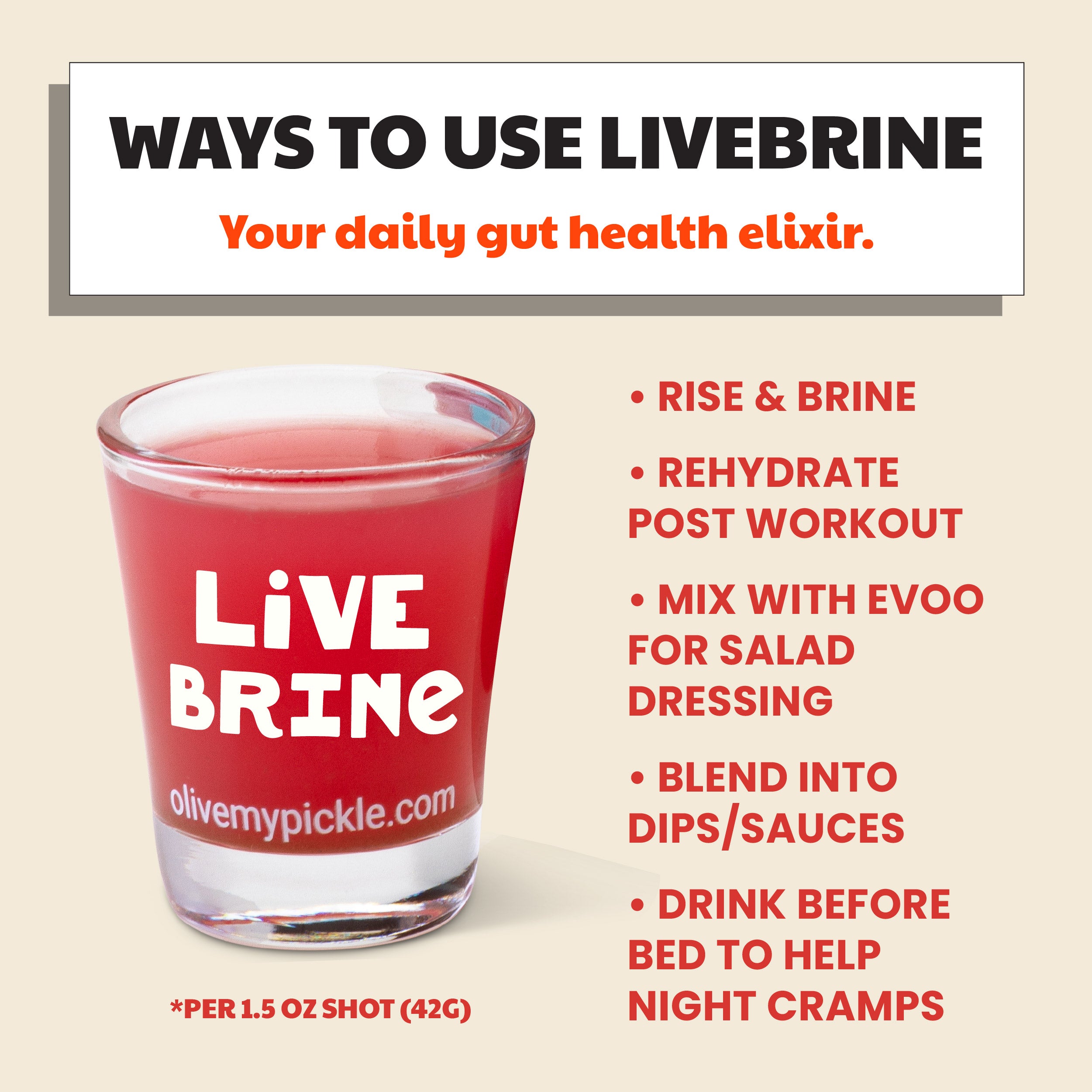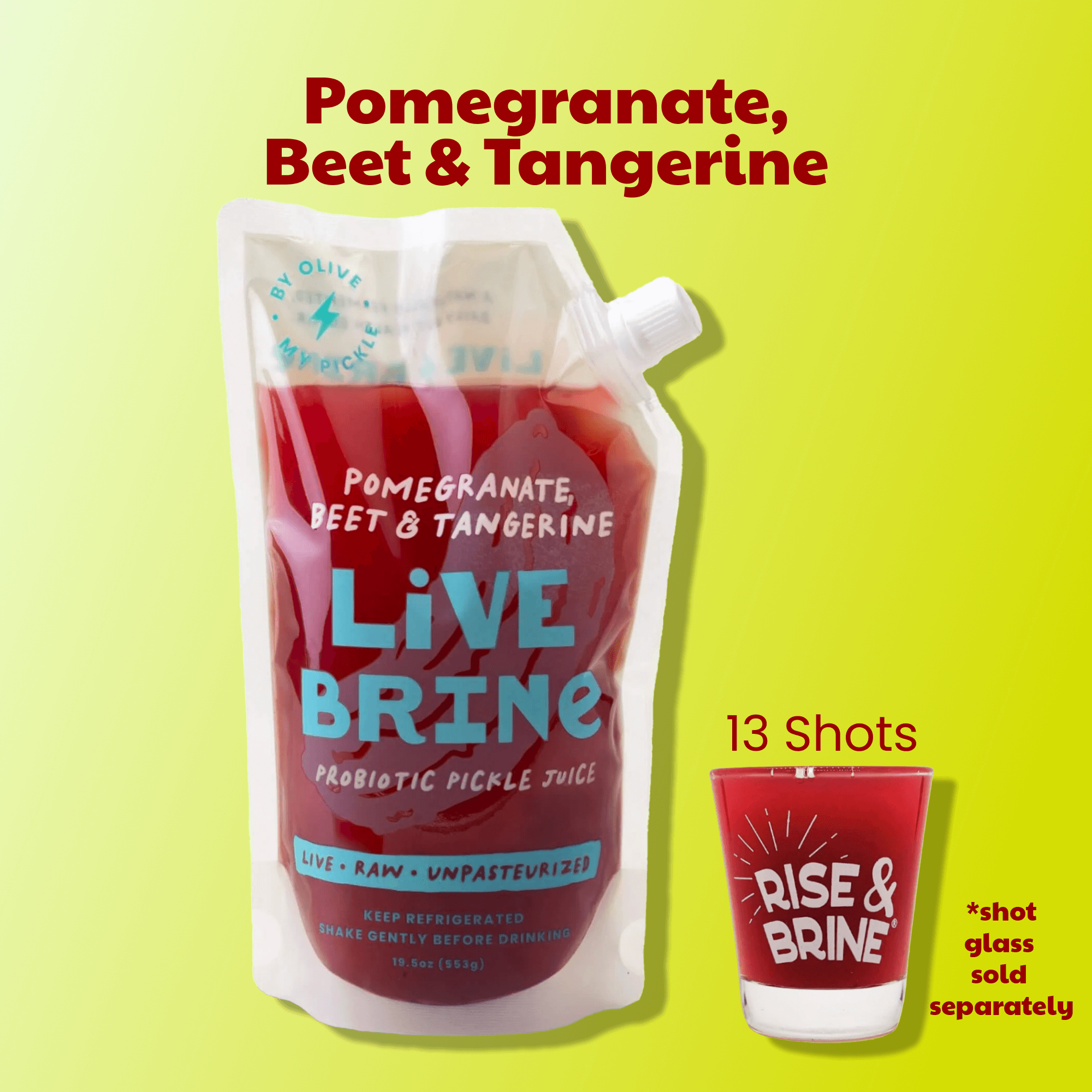 A beet-forward fermented pickle juice, slightly sweet, citrusy and just the right amount of tanginess. A flavorful pickle juice shot is the perfect way to start or end your day!