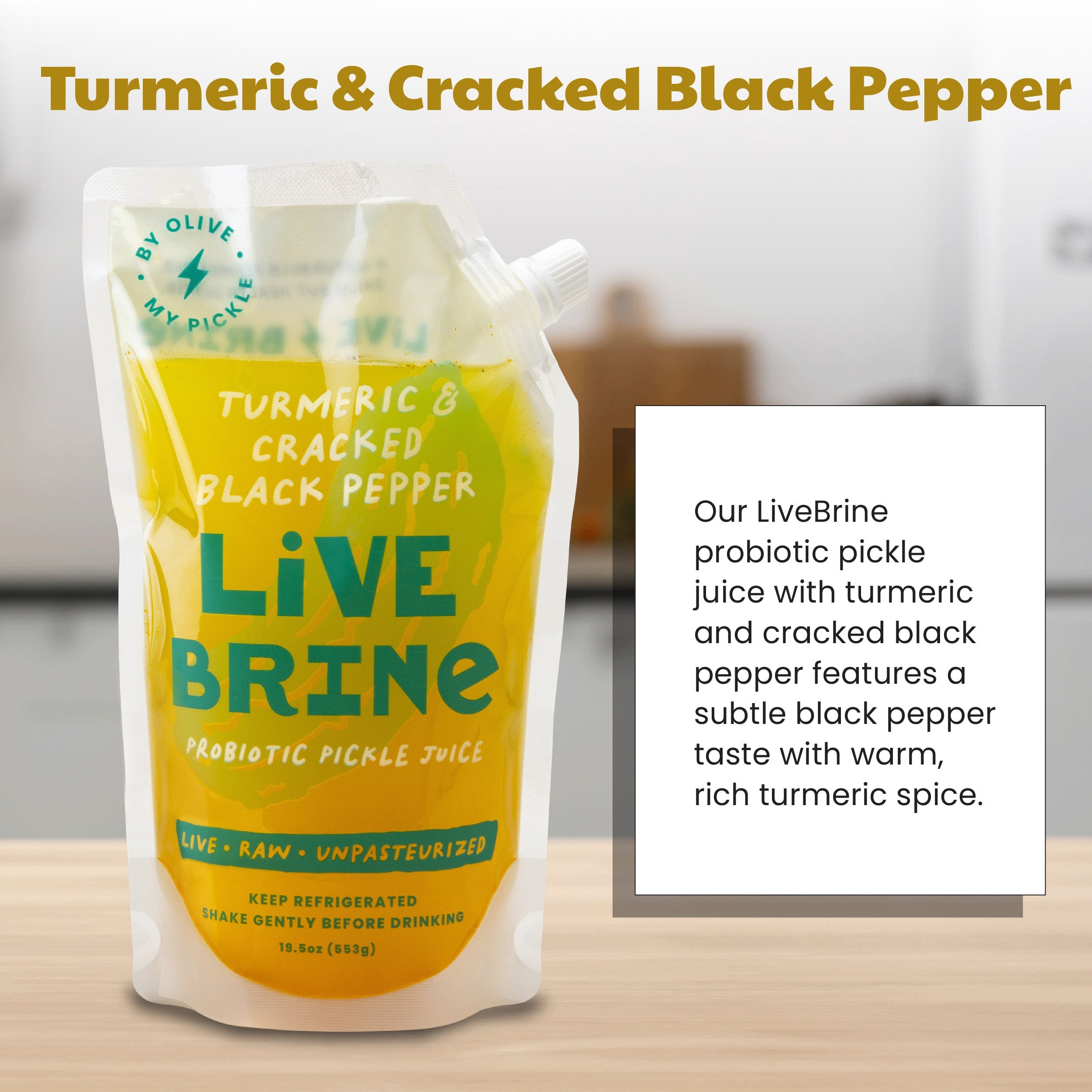 LiveBrine Probiotic Pickle Juice: Turmeric & Cracked Black Pepper (3 PACK)