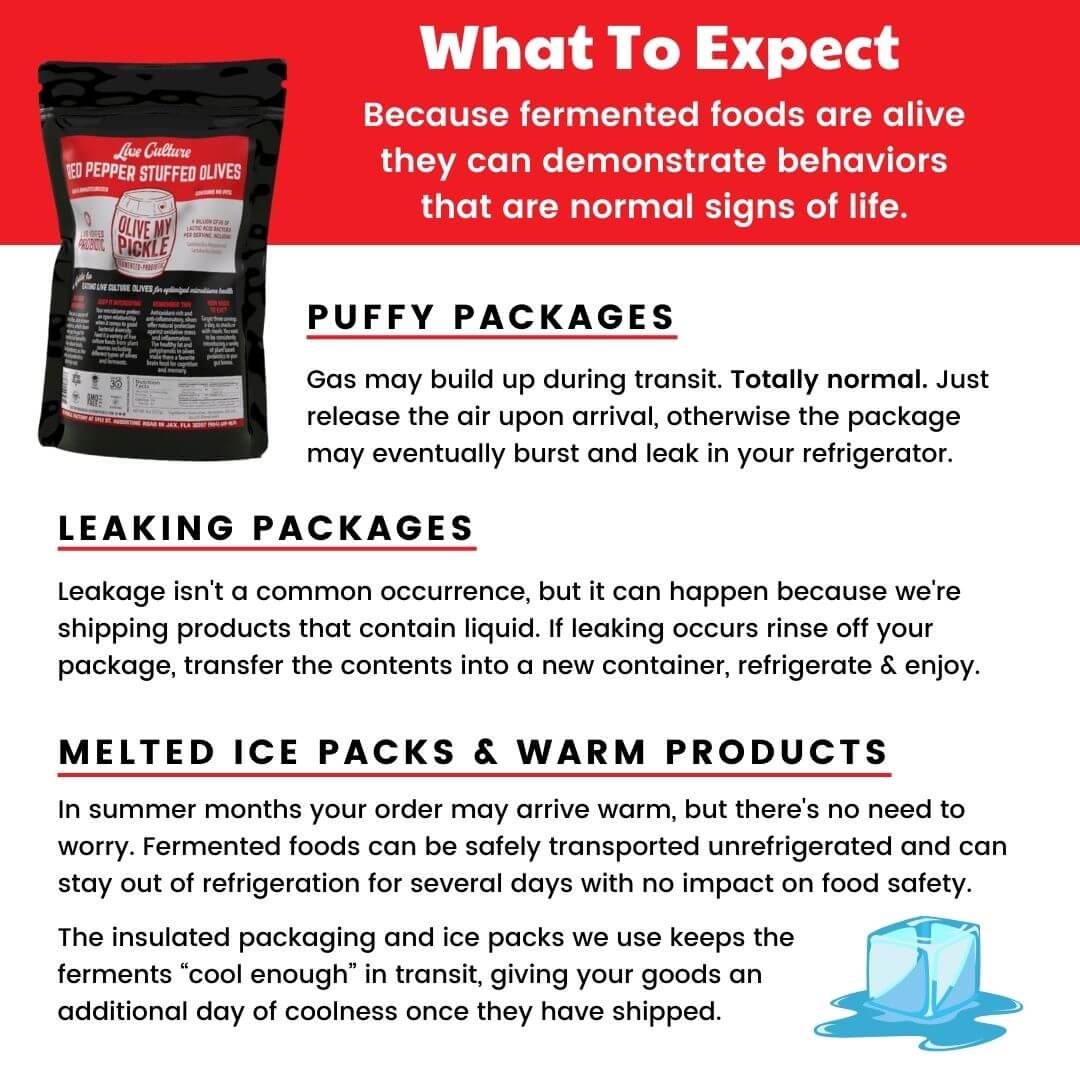 - One package contains 16 ounces, equaling one full pint of fermented green olives plus brine.