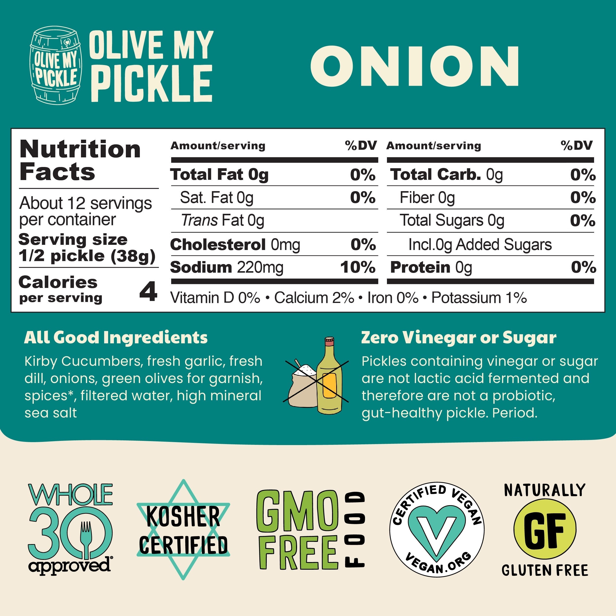Onion Fermented Pickles are a fresh, crunchy and savory pickle with a delicious hint of oniony sweetness. A flavorful twist for your taste buds!