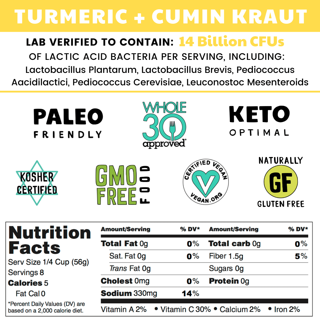 Turmeric + Cumin Fermented Sauerkraut (3 PACK)